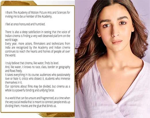 Bollywood actors Alia Bhatt and Hrithik Roshan are among the 819 artists and executives who have been invited to join the Academy of Motion Picture Arts and Sciences (AMPAS). Alia is very happy to be a part of it. Alia has expressed her happiness by writing a post on Instagram and has told how proud she is feeling.